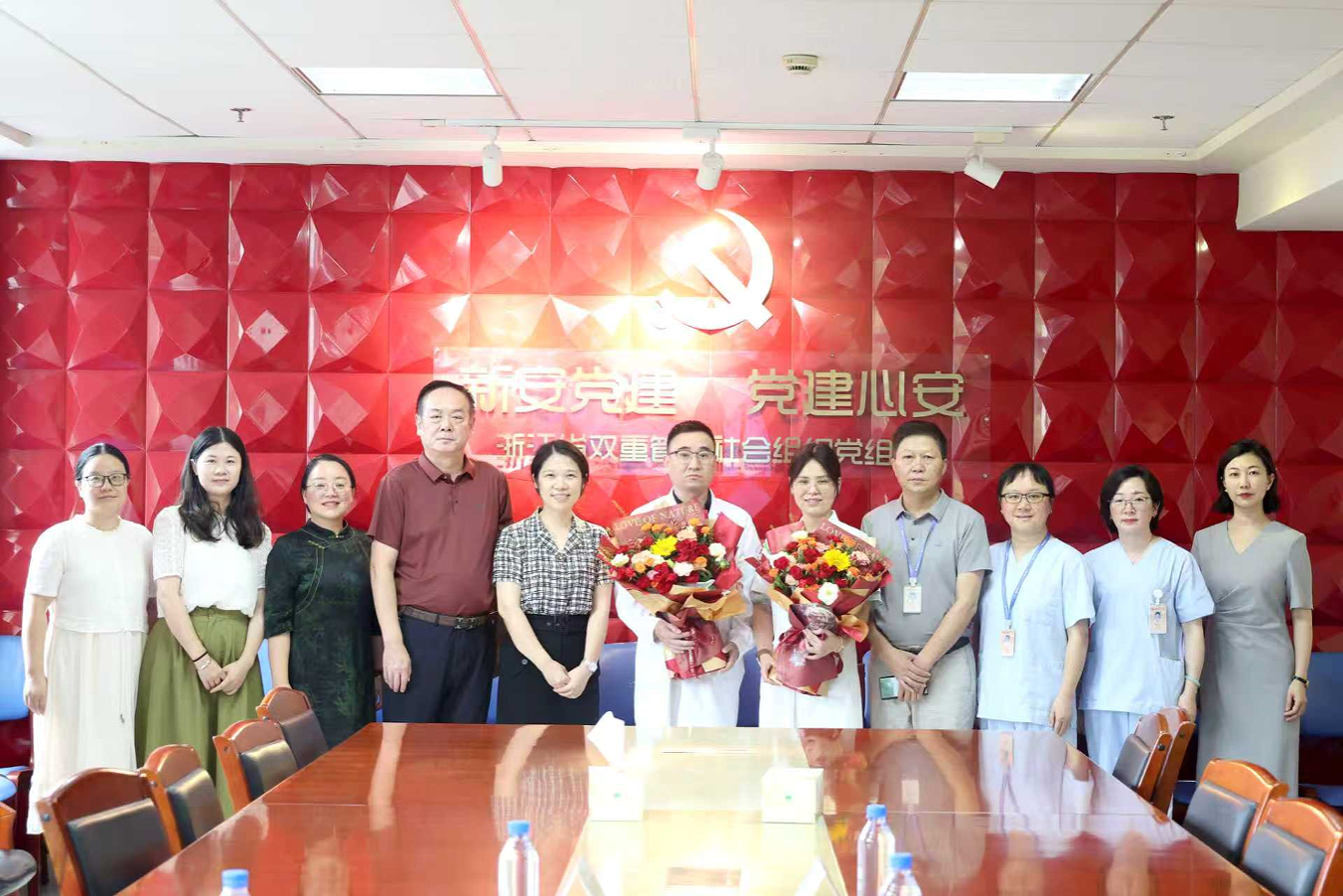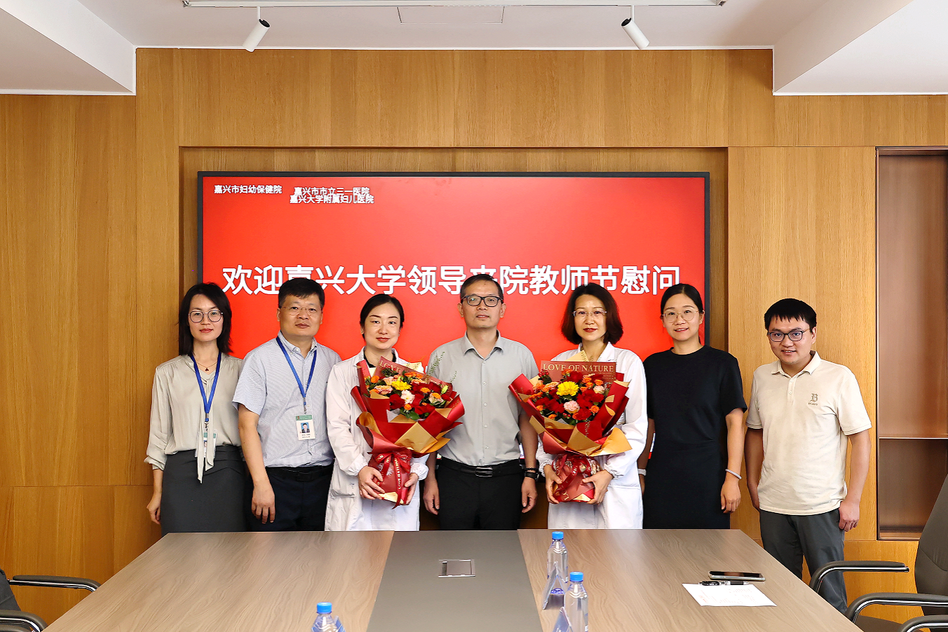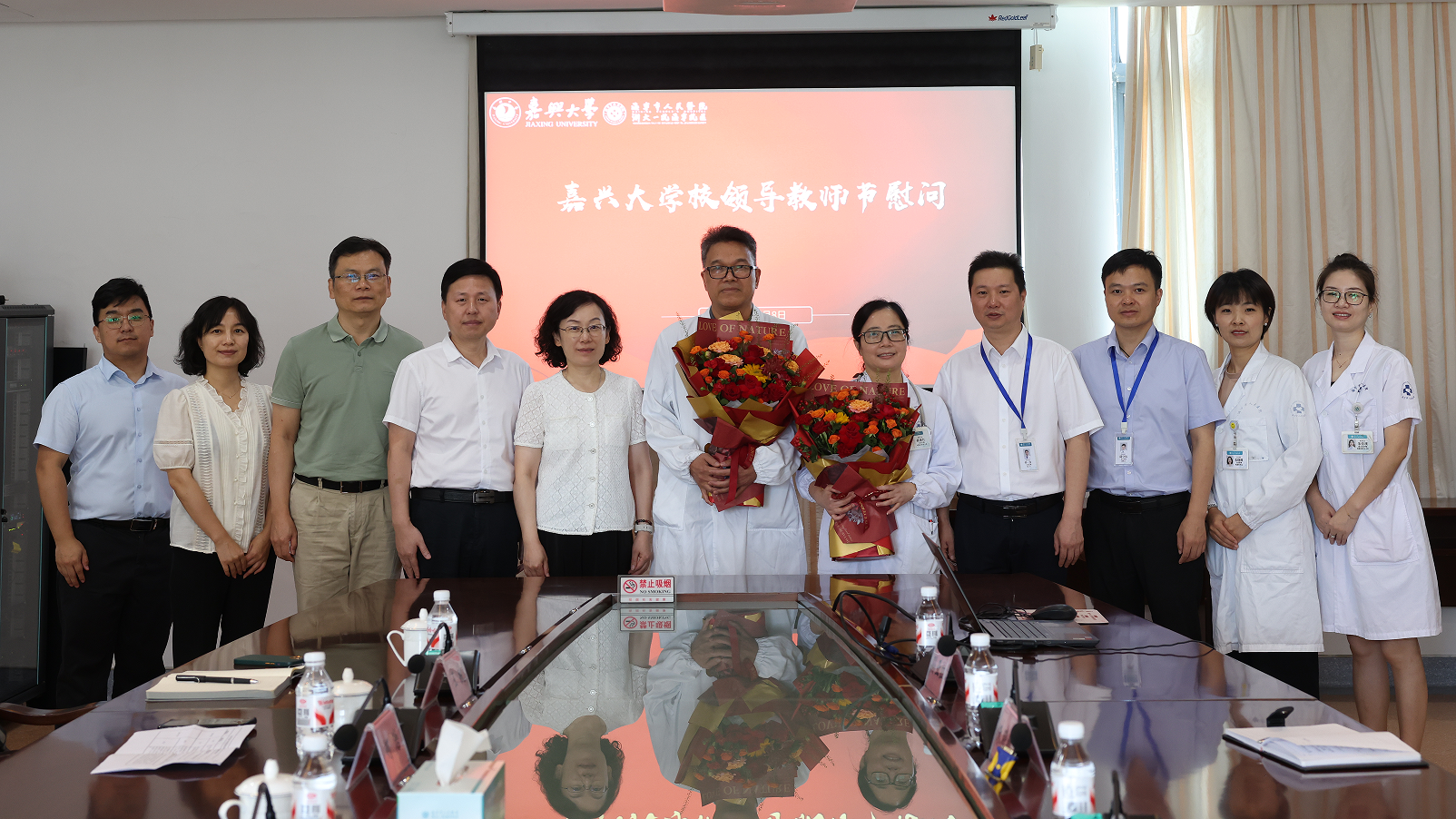 附属城南社区卫生服务中心的临床教师代表,为他们送上鲜花,致以祝福,通过他们向医院所有临床教师和教学管理人员致以节日问候。并就医院医疗、教学和科研工作进行座谈调研。
