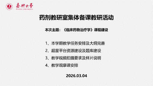 本次活动还对本学期教学观摩课作出安排。后续各教研室将围绕课程思政、实验教学改革、教材建设等主题陆续开展集体备课。药学系将持续以机制化建设推动教学持续改进,将集体备课成果转化为课堂实效,为培养高素质应用型药学人才夯实基础。