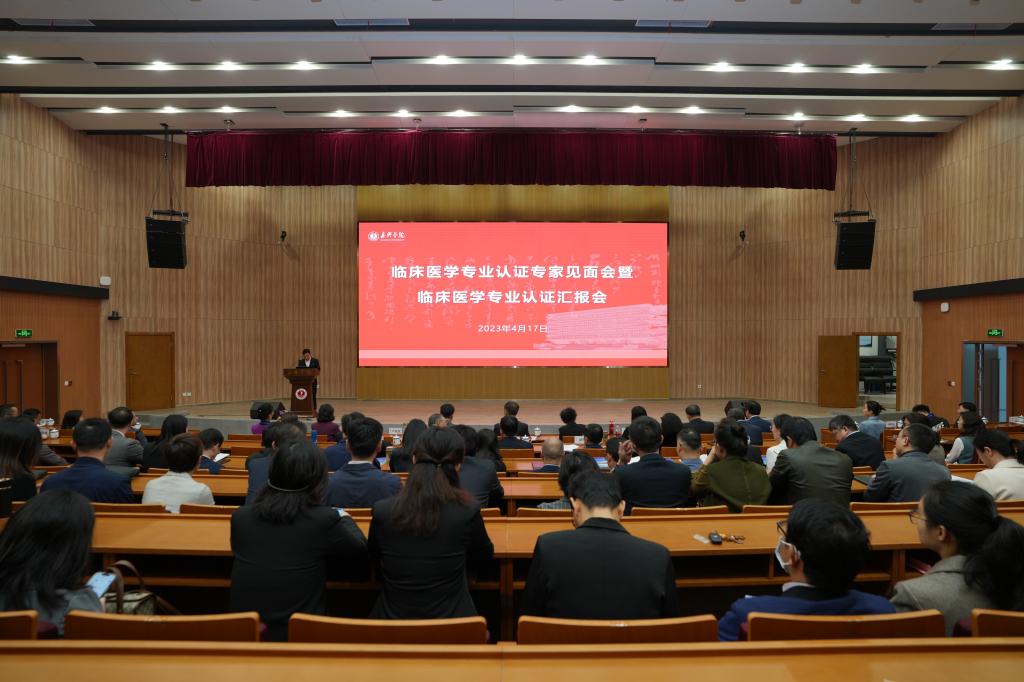 4月17日,教育部临床医学专业认证专家组一行9人来到我校,开展为期4天的临床医学专业认证现场考察工作。上午,临床医学专业认证专家组见面会暨专业建设情况汇报会在行政楼一楼报告厅举行。教育部临床医学专业认证专家组组长、哈尔滨医科大学原副校长曹德品教授,专家组副组长、汕头大学中文av 原执行副院长杨棉华教授,北京卫生职业学院校长付丽教授,西南医科大学副校长何涛教授,北京大学公共卫生学院副院长王志锋教授,复旦大学基础中文av 医学教育与医学人文研究中心副主任汪青教授,南通大学附属医院副院长桑爱民教授,专家组秘书、四川大学华西第二医院筑浪学院副院长闫昱江副教授,项目管理员、全国医学教育发展中心孙晓凡,嘉兴市委常委、副市长齐力,嘉兴市卫健委党委委员、副主任李金大,嘉兴市教育局党组成员、副局长苏海林出席会议。校领导卢新波、吴云达、钱方明、胡俊云、陈新友、张琦、陈荣达、周宏伟,学校专业认证工作领导小组成员、相关职能部门负责人,中文av 和附属医院领导班子成员、相关部门负责人,中文av 教师代表、学生代表参加会议。